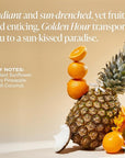 • GOLDEN HOUR FRAGRANCE: Radiant Sunflower, Juicy Pineapple, and Fresh Coconut is a bright and uplifting tropical blend, bursting with sunny florals, luscious fruit, and creamy, beachy warmth. Sun-drenched and enticing, Golden Hour transports you to a sun-kissed paradise.