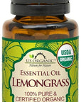 US Organic 100% Pure Lemongrass Essential Oil, USDA Certified Organic, Extracted by Steam Distillation Method, for Hair, Nail Polish Remover, Bees Attraction, and More. 15 ml