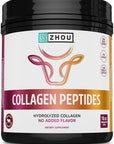 Zhou Collagen Peptides - Pure Hydrolized Collagen Powder for Women & Men, Grass Fed Natural Bovine Collagen for Skin, Hair Growth, Joints & Bones - 18 oz Jar (46 Servings)