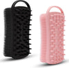 2 PC Silicone Body Scrubber, 2 in 1 Exfoliating Shower Bath Scrubber, Soft Silicone Loofah for Sensitive Skin, Shower Hair Scalp Massager, Easy to Clean, Lather Well (Black&Pink)
