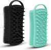 2 PC Silicone Body Scrubber, 2 in 1 Exfoliating Shower Bath Scrubber, Soft Silicone Loofah for Sensitive Skin, Shower Hair Scalp Massager, Easy to Clean, Lather Well (Black&Green)