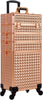 AROUS 5 in 1 Rolling Makeup Train Case Cosmetology Case on Wheels Large Cosmetic Organizer Travel Cart for Hairstylist Artist Nail Beauty Salon Barber,Gold