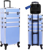 5 in 1 Professional Makeup Train Case Aluminum Cosmetic Case Rolling Makeup Case ExtraLarge Storage Organizer with Key Swivel Wheels Salon Barber Case for Make Up Nail Hairstylists, Blue