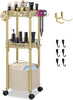 3-Tier Rolling Makeup Organizer Cart with Hair Dryer Holder - Salon-Grade Cosmetic Organizer, Mobile Bathroom Storage Cart for Skincare, Makeup Essentials -Locking Wheels (Gold Finish)