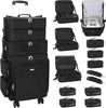 Relavel Rolling Makeup Case, 4 in 1 Hairstylist Traveling Bag Cosmetology Case on Wheels Large Hair Tools Cosmetics Train Case Makeup Artist Organizer (black with 4 additional small bags, Extra Large)