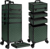 5 in 1 Rolling Makeup Train Case on Wheels Large Cosmetic Organizer Travel Cart for Women Beauty Salon Barber Hairstylist Green