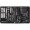 - CONTENTS: Cuticle scissors, nail scissors, cuticle nipper, nail nipper, tweezers oblique, tweezers pointed, tweezers straight, sapphire nail file, pusher/cleaner/scraper, double instrument, hoofstick, nail cleaner, blackhead remover, nail nipper, toe nail nipper, sapphire form file - curved blade, callus remover, corn rasp, hair scissors, nostril scissors, embroidery scissors.