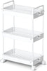 - 【Space-Saving Slim Design】: Measuring 25.96” x 15.75” x 8.66”, this 3 tier rolling storage cart with wheels is designed to fit properly into small, narrow spaces. Whether you need extra storage in bathroom corners, in laundry room, between the washer and dryer, next to the fridge, under the kitchen sink, or beside your bed, this compact three tiered storage cart on wheels offers a practical solution to keep your essentials organized and within reach
