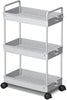 - 【Space-Saving Slim Design】: Measuring 25.96” x 15.75” x 8.66”, this 3 tier rolling storage cart with wheels is designed to fit properly into small, narrow spaces. Whether you need extra storage in bathroom corners, in laundry room, between the washer and dryer, next to the fridge, under the kitchen sink, or beside your bed, this compact three tiered storage cart on wheels offers a practical solution to keep your essentials organized and within reach