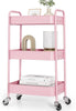 TOOLF 3-Tier Metal Rolling Cart with Wheels, Storage Utility Organizer Cart for Kitchen, Bathroom, Office, Baby Essentials & Makeup - Lockable Casters, Easy Assembly, Large Capacity, Pink