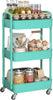 Sywhitta 3-Tier Plastic Rolling Utility Cart with Handle, Multi-Functional Storage Trolley for Office, Living Room, Kitchen, Movable Storage Organizer with Wheels, Green