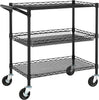 Finnhomy 3 Tier Heavy Duty Commercial Grade Utility Cart, Wire Rolling Metal Trolley with Handle Bar, Steel Kitchen Service Cart with Wheels, Food Storage Trolley on Wheels, NSF Listed, Black