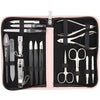 - CONTENTS: Glass nail file (double sided), nail stick, blackhead remover, double instrument (pusher/cleaner), sapphire nail file (fine and coarse coating), nail clipper, toe nail clipper, nail pusher, nail cleaner, nail knife, nail nippers, cuticle nippers, nail scissors, cuticle scissors, tweezers, splinter tweezers.