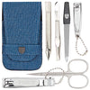 3 Swords Germany - brand quality 6 piece manicure pedicure grooming kit set for professional nail care with jeans textile case - Made in Germany