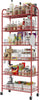 Slim Rolling Storage Cart, 6 Tier Metal Kitchen Rolling Utility Cart with Lockable Wheels for Kitchen, Bathroom, Laundry Room, Small Narrow Spaces (Red 10 Inches)