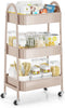 EAGMAK 3 Tier Rolling Cart, Large Metal Storage Cart with Handle and Lockable Wheels, Big Multifunctional Storage Organizer Trolley with Mesh Baskets for Kitchen, Living Room, Office, Garage (Beige)