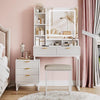 - FLEXIBLE SIDE STORAGE CABINET - Our make up vanity table features versatile storage cabinets that can be installed on either side. Easily adjust the size of the vanity desk to suit your space and needs by simply repositioning the cabinet. This adaptability ensures that it perfectly fits your lifestyle, whether you require more surface area or compact storage. Additionally, the dressing table is equipped with an anti-tipping device, ensuring stability while you move the cabinet.