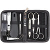 3 Swords Germany – brand quality 10 piece manicure pedicure grooming kit set for nail care tweezers file clipper, Made by 3 Swords (BLACK - GENUINE LEATHER)