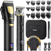 - PREMIUM ACCESSORIES INCLUDED: The professional barber clippers come with a cordless hair clipper, a T-blade hair trimmer, and premium accessories, including a storage bag, 12 hair clipper guard attachments (1.5-25mm & left/right ear taper), 3 hair trimmer guards (1.5-3mm), a barber cape, a comb, a cleaning brush, and 2 USB cables