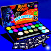 Blue Squid UV Neon Face and Body Paint Glow in the Dark Face Paint Kit 20 Colors Black Light with Stencils, Book - Safe for Sensitive Skin, Non-Toxic UV Painting Professional Accessories Kids Adults