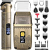 - Professional Foil Shaver and Hair Trimmer Set: The 2 IN 1 trimmer kit includes hair clipper with five guide combs((3/6/9/12/15 mm) , T-blead trimmer head with four guide combs((1/3/5/7 mm) nose/ear hair trimmer for men, beard trimmer attachment and foil shaver, which are practical and can meet the various needs of shaving bald head, nose/ear hair, beard and other body hair. It’s a nice choice for home users and barbers to use, also it’s a good choice for your family on important holidays
