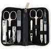 • CONTENTS: Nail scissors, cuticle scissors, finger nail clipper, toe nail clipper, tweezers, glass nail file (double sided), sapphire nail file (fine and coarse coating), nail pusher/cleaner.
