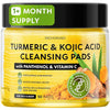 Turmeric Kojic Acid Cleansing Pads - Exfoliating Turmeric Pads for Face Dark Spots, Discoloration - Daily Skin Care for Men & Women - Natural Glow Facial Wash