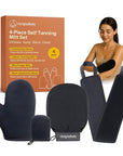 - 【Curated 4-Piece Self Tanning Kit】 Includes 1 back applicator, 1 full-size self tanning mitt for body, 1 mini mitt for face and neck, plus 1 exfoliating glove to prep skin—covering every step of your sunless tanning routine and providing an even, streak-free glow.