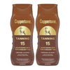 - INCLUDES: Two (2) 8 fluid ounce bottles of Coppertone Tanning Sunscreen Lotion SPF 15