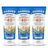 Badger Reef Safe Sunscreen, Unscented SPF 40 Sport Mineral Sunscreen, 98% Organic, Water Resistant Zinc, Approved for Hawaii & Mexico Reefs, 2.7 fl oz, 3-Pack