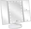 deweisn Floor Mount Tri-Fold Lighted Vanity Mirror with 21 LED Lights, Touch Screen and 3X/2X/1X Magnification, Two Power Supply Modes Make Up Mirror,Travel Mirror