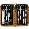 3 Swords Germany – brand quality 8 piece manicure pedicure grooming kit set for professional nail care with synthetic leather case ostrich cognac - Made in Germany
