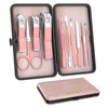 ZIZZON Travel Mini Manicure Set Nail Clipper Set 10 in 1 Stainless Steel Pedicure Care Grooming kit with Case Pink