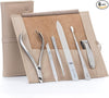 GERMANIKURE 6pc Manicure Set in Beige Leather Case - FINOX Stainless Steel Tools Made in Germany, Glass Nail Care Supplies Made in Czech Republic – Professional Cuticle and Nail Care Kit