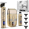 - PROFESSIONAL BARBER CLIPPERS & TRIMMER SET - Men's Trimmer Grooming Set includes barber clippers, men's nose hair trimmer, and dual blade aluminum foil razor.The T-Blade Beard Trimmer makes it easy to trim hair, beards, artistic carvings, sideburns, precision trimming, and body trimming. Ear and Nose Trimmer for precise, gentle trimming of ear and nose hairs. Electric bald aluminum foil razor for beard trimming.