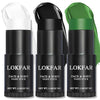 - PRO FACE BODY PAINT STICK --- Our black green white face paint sticks are 1.06oz/30g in size, and are large enough to cover all types of Halloween characters' face and body makeup. The waterproof and sweat-proof oil-based formula glides on and blends easily, does not fade, crack, flake, or clump. It can be easily applied with a brush, sponge, or fingers. Warm Tips: Since this is an oil-based product, we strongly recommend that you use a setting product after application to keep the makeup longer and avoid transfer and smudging.