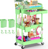 - 【360° Swivel and Lockable Wheels】Our rolling carts with wheels is set up with safety protection features. The rolling cart organizer has easy-to-push handles on both sides, and the wheels swivel 360° for a silky-smooth push and easier maneuvering around corners. The 4 wheels are made of thick metal as well as durable plastic with smooth edges that won't scratch your floors. 2 of casters lock in place will keep the green rolling cart stable and stationary when needed.