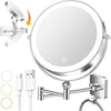 10x Large Wall Mounted Makeup Mirrror, Height Adjustable Lighted Mirror, 8" Double Sided Mirror, 1X/10X Magnifying Bathroom Mirror, 360° Rotation Adjustable, Detachable Ring, 3 Color Lights