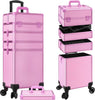 Profesional Rolling Makeup Train Case with Lid, 5 in 1 Cosmetology Case on Wheels, Large Cosmetic Trolley Organizer Travel for Hairstylist Artist Nail Beauty Salon Barber, Pink