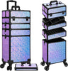 Profesional Rolling Makeup Train Case with Lid, 5 in 1 Cosmetology Case on Wheels, Large Cosmetic Trolley Organizer Travel for Hairstylist Artist Nail Beauty Salon Barber, Gravel Purple