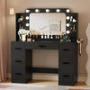YESHOMY Vanity Desk with Large Lighted Mirror, Power Outlet and 11 Lights, Makeup Table with 7 Drawers and 3 Desktup Storage Units, 3 Color Modes Available for Bedroom, Black