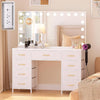 COMHOMA Vanity Desk with Large Mirror,15 LED Bulbs and Power Outlet,Makeup Table with 9 Storage Drawers and HD Mirrors,3 Color Modes Adjustable Lighting for Bedroom Dressing Room (White, 47inch)