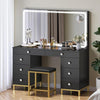DWVO Black Vanity Desk with Mirror: Makeup Table with Power Outlets & 8 Drawers 3-Mode LED Mirror, Storage Stool for Dressing Room