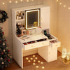 - Farmhouse and Practical Design: With 15 storage space, golden handles, metal hairdryer holder, and sliding LED mirror, this dressing table offers chic and functional design, which adds a elegant, contemporary touch to your living space of kinds of styles